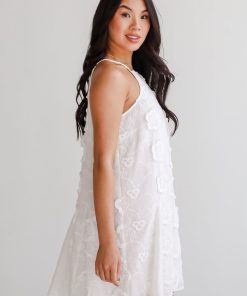 With the Always Remarkable White Floral Embroidered Mini Dress, it’s inevitable that compliments will follow you all day long! This white spaghetti strap mini dress is adorned with intricate floral embroidery, adding a touch of elegance to its breezy silhouette. The lightweight fabric drapes beautifully, while the adjustable straps ensure the perfect fit. Perfect for sun-drenched days and moonlit nights, this dress pairs effortlessly with strappy sandals for a casual look or elevated with heels and dainty jewelry for a special occasion! Lightweight Cotton Fabrication Floral Embroidery with Frays Square Neckline Adjustable Spaghetti Straps Flowy Fit Keyhole Back with Functional Tassel Tie Short/Mini Length Fully Lined Self + Lining: 100% Cotton Hand Wash Cold, Lay Flat to Dry Models are 5’4″ and are wearing a Small.Garment Measurements in Inches:Small | Bust 36″ | Waist 40″ | Hips 42″ | Length 35″Medium | Bust 38″ | Waist 42″ | Hips 44″ | Length 35.5″Large | Bust 40″ | Waist 44″ | Hips 46″ | Length 36″