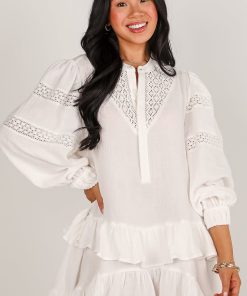 FINAL SALE – Prominent Charm Off White Linen Ruffle Mini Dress